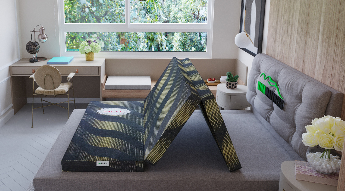 – Thiết kế nệm tinh giản, gấp 03 mảnh gọn nhẹ, dễ dàng vệ sinh và cất giữ, phù hợp cho không gian sống hiện đại của nhiều gia đình, đặc biệt là những hộ gia đình có diện tích nhỏ hẹp.